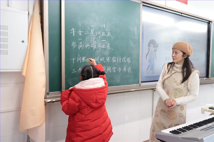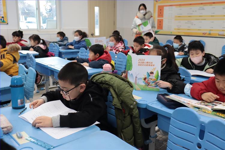 早晨,孩子们到达班级后在大学生志愿者的带领下诵读传统文化教育读本。志愿者们通过逐句领读、请小组同学共同朗读等方式加深孩子们对《沁园春·雪》《七律·长征》和《七律·人民解放军占领南京》三首著名诗词的理解。不少小朋友在晨读结束后都能流利的朗诵,甚至能把其中几首词都背下来啦!