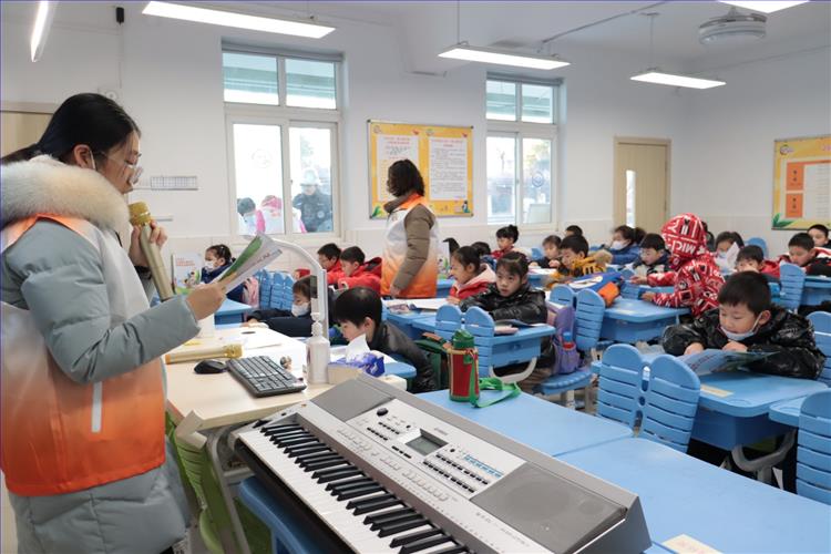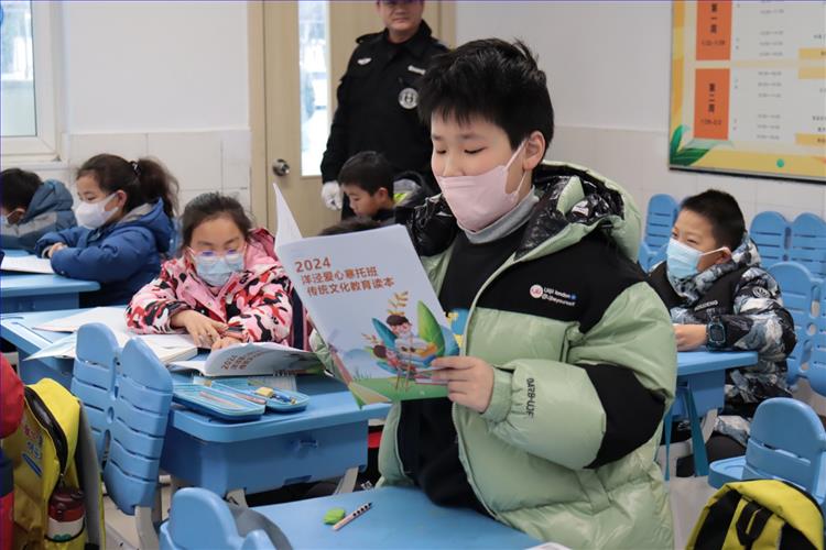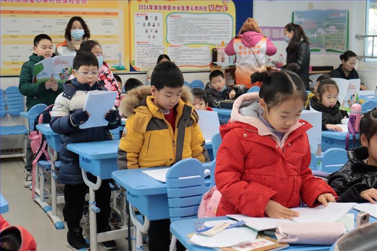 之后,小朋友们安静的在教室里看书或完成寒假作业,等待家长来接。家长走到教室门口时,小朋友们在志愿者老师的指引下依次有序地离开。