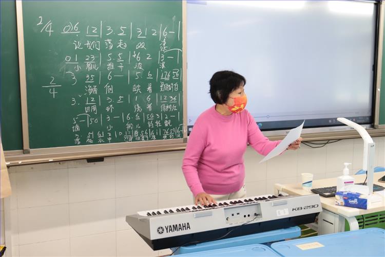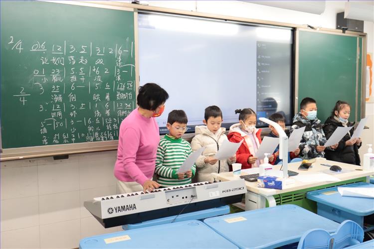 上午,于健老师给孩子们带来了精彩的少儿声乐课。课堂开始,于老师先带着孩子们随着节奏做出一系列动作并邀请小朋友们上台展示;活跃班级的课堂氛围,并让孩子们亲身感受到不同节拍之间的强弱的差异。接着,于老师用电子琴弹奏音符,表现出不同节拍的区别。孩子们对节拍逐渐熟悉后,于老师开始逐句弹奏出《让我们荡起双桨》,小朋友们跟着音乐唱出歌词,在老师的指点下很快就学会了这首歌曲。大家基本学会后,于老师邀请几位小朋友上台演唱,都唱地很不错哦!
