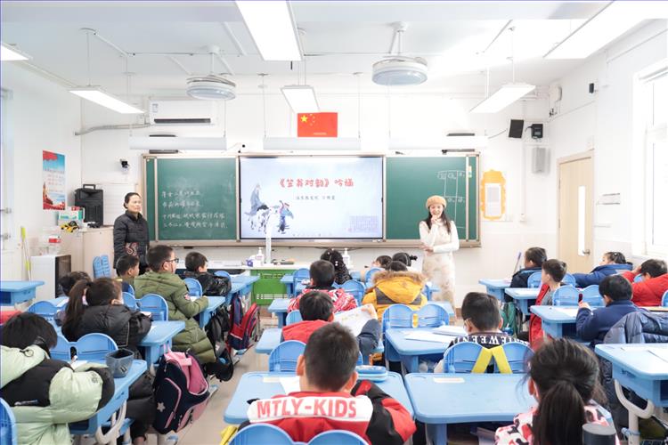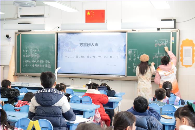 下午,万老师给同学们带来了第二节《笠翁对韵》的吟诵课。课前,万老师先与孩子们一起回顾了昨天学习的内容,并请多名同学吟诵了这个片段。学习新内容时,万老师先让一名同学试着标出词句的平仄。接着,老师希望同学利用方言辨“入声字“;她请了一位小朋友用上海话念出数字一到十。万老师还告诉大家一些如何分辨”入声字“的小技巧,以及”韵长入短“的吟诵方法。在大致听懂并学会正确的方法后,孩子们逐句学习,开始吟诵《笠翁对韵》”一东“的第二段。逐句学习结束后,老师再带着孩子们一起吟诵了第二段,小朋友们收获满满。